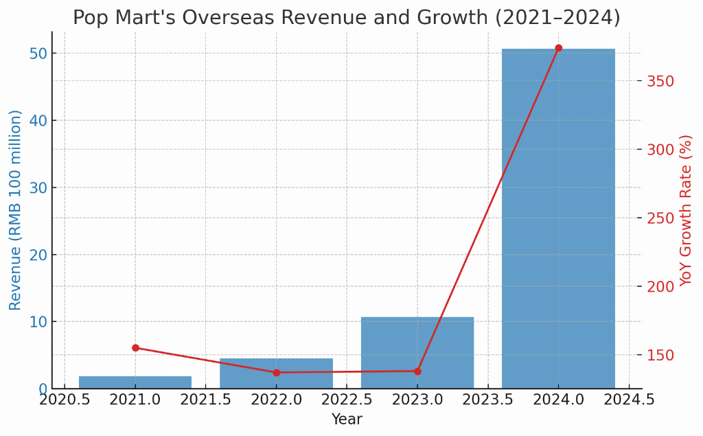 See Figure 1: Pop Mart’s Overseas Revenue and Growth (2021–2024)