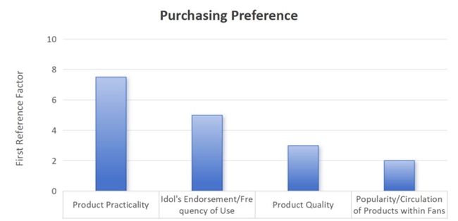 Most fan consumption generates positive value: in surveys, 75% of respondents believed such spending enhances their lives by drawing motivation from idols or using fandom for emotional replenishment. It also fosters financial rationality: more than 60% of fans set spending limits according to their income, and 72% reported learning budgeting skills through fan activities. In purchasing decisions, fans give priority to the practical value of a product, followed by “association with the idol” and “product quality,” showing that there is a balance between emotional attachment and actual added value. Finally, the “popularity of an item within the fan circle” is the lowest, which indicates a preference for personal need over group trends. Overall, rationality dominates.